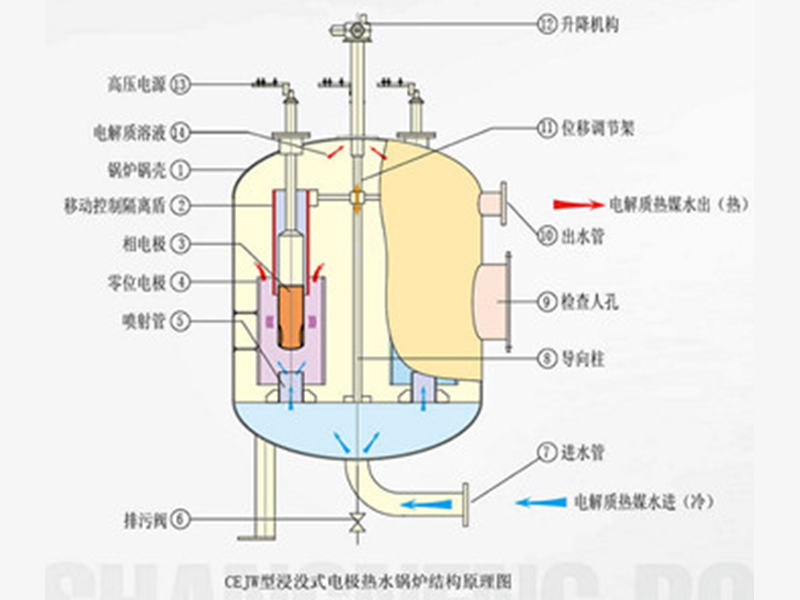 高壓浸沒式熱水電極鍋爐2022-02-24產(chǎn)品名稱:高壓浸沒式熱水電極鍋爐一、高壓浸沒式電極熱水鍋爐工作原理電極式熱水鍋爐的電極系統(tǒng)包括三相電極,中性點(diǎn)不接地電極和保護(hù)盾。電極安置在絕緣體上,和爐體隔離。保護(hù)盾由電動(dòng)執(zhí)行器控制,可以調(diào)節(jié)鍋爐的供熱負(fù)荷量。調(diào)節(jié)負(fù)荷從5%—100%。電極熱水鍋爐可以直接連接到電腦上,鍋爐本體是安裝在絕緣器上。這種安裝